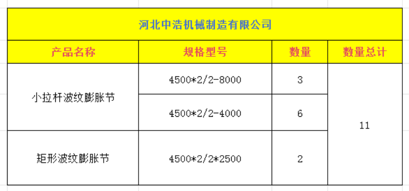 尊敬的秦經(jīng)理,感謝您對河北中浩 產(chǎn)品信任與選擇。很高興通知您,您在河北中浩訂購的小拉桿膨脹節(jié)、矩形波紋補償器等產(chǎn)品, 已經(jīng)完成生產(chǎn)、檢驗、包裝等全部工作,現(xiàn)已裝車發(fā)貨,愿您及時了解發(fā)貨詳情,做好接貨準備。特向您提供發(fā)貨相關(guān)信息。