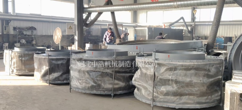 變徑非金屬軟連接其構(gòu)成有著不同特點(diǎn),其中蒙皮部分由多層纖維織物材質(zhì)組成,且可根據(jù)具體工況選擇合適的材質(zhì)組合,且蒙皮具有伸縮范圍寬、柔韌性好,耐溫耐腐、阻燃和吸音降噪功能力。金屬框架為軟連接提供支撐和固定作用,內(nèi)部導(dǎo)流筒有效減少介質(zhì)腐蝕,增強(qiáng)使用壽命,提高介質(zhì)流通性,同時(shí)內(nèi)部可增加保溫棉等材料,減少熱散失,提高能效。因此,非金屬軟連接廣泛使用各種領(lǐng)域,如火力發(fā)電廠、鋼鐵廠、冶煉廠以及各種除塵器、鼓風(fēng)機(jī)等設(shè)備排風(fēng)系統(tǒng)中,還有其他需要吸收熱脹冷縮、補(bǔ)償位移、降音減噪等工作條件中。