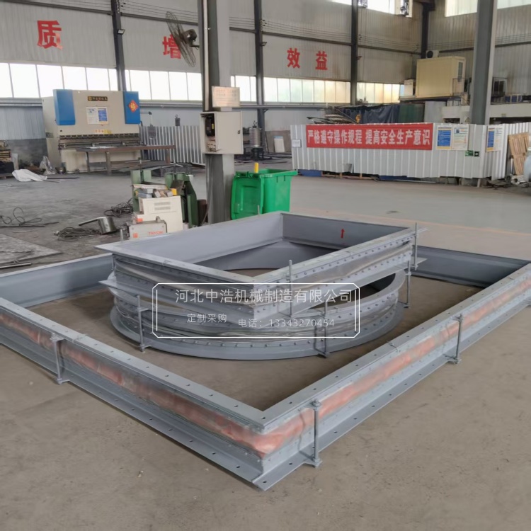 首先根據(jù)材料特性,煙道蒙皮膨脹節(jié)一般由硅膠布、氟膠布、玻璃纖維以及鋼絲網(wǎng)等多層復(fù)合材料組成,具體要根據(jù)系統(tǒng)工況條件去選擇,多層復(fù)合結(jié)構(gòu)的組成,以及收否加鋼絲網(wǎng)和防腐層,而層數(shù)和加固方案都需要滿足工況要求。設(shè)計(jì)參數(shù)要匹配,安裝前要明確系統(tǒng)閾值大工作壓力和系統(tǒng)壓力通常為常壓1.5倍,若是高溫需要對根據(jù)介質(zhì)溫度材料溫度與壓力曲線進(jìn)行設(shè)計(jì)。安裝方向和承壓方式也需要注意,要區(qū)分正負(fù)壓,正壓壓力作用于內(nèi)部,需確保法蘭和壓板緊固均勻。而負(fù)壓一般真空或負(fù)壓系統(tǒng),需注意增加支撐,避免蒙皮吸扁可能。安裝時需設(shè)置足夠?qū)蛑Ъ芎凸潭ㄖЪ埽苊夤艿劳饬椭亓恐苯幼饔迷谂蛎浌?jié)上,導(dǎo)致局部超壓。安裝過程中避免扭曲、拉伸壓縮蒙皮,否則會降低承壓能力。還需注意介質(zhì)情況,若腐蝕性介質(zhì)需增加防腐涂層避免蒙皮腐蝕,若是顆粒介質(zhì),可增加導(dǎo)流板或耐磨層,防止磨損,增強(qiáng)使用壽命,,拉伸壓縮按設(shè)計(jì)要求與壓縮或預(yù)拉伸,避免蒙皮過度承壓。
