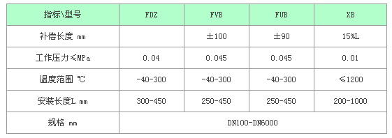 FUB型風(fēng)道橡膠補(bǔ)償器性能參數(shù)表